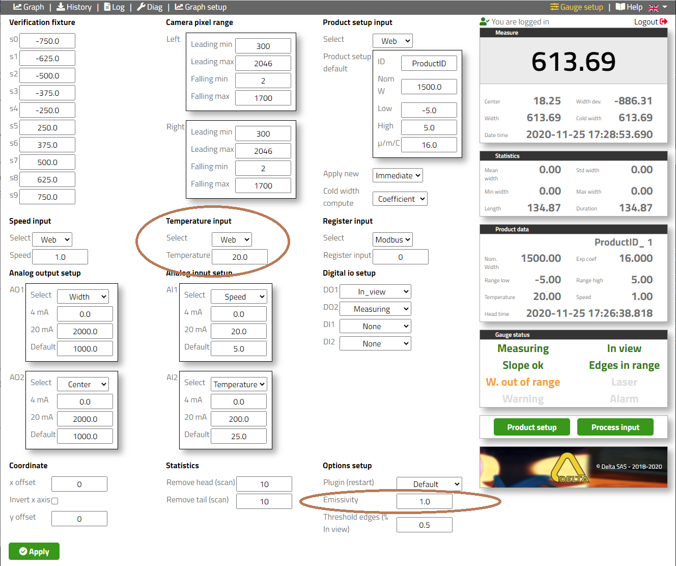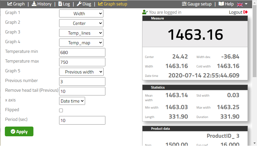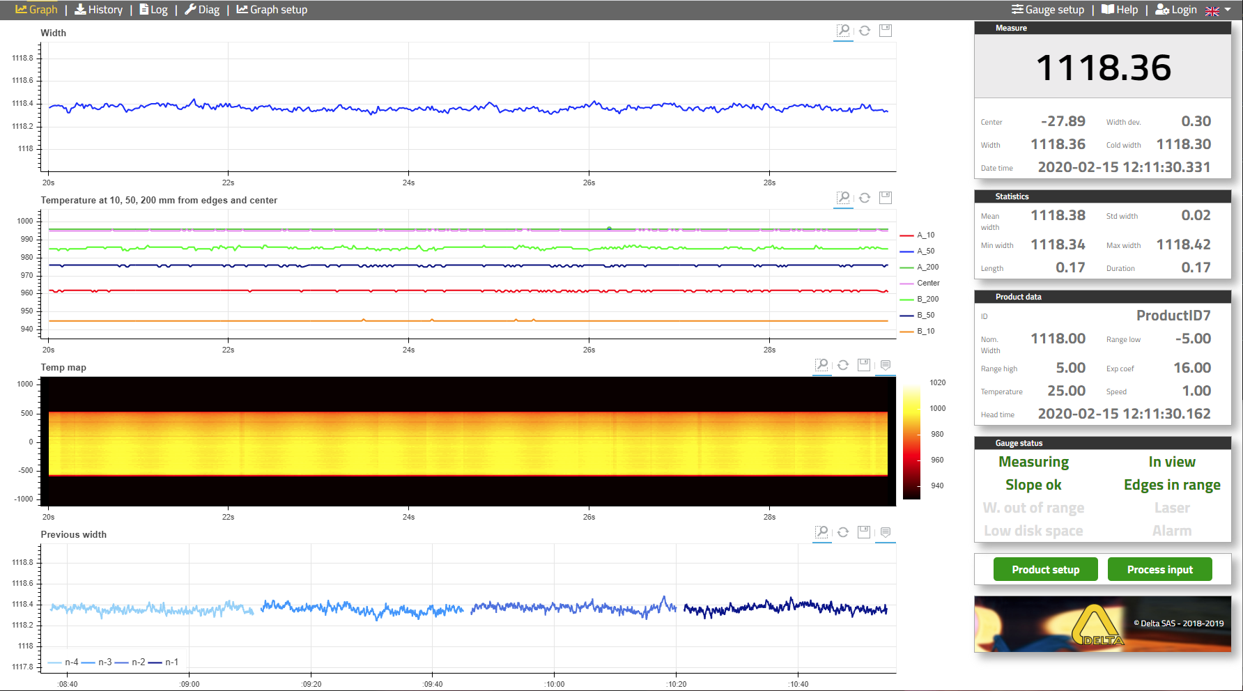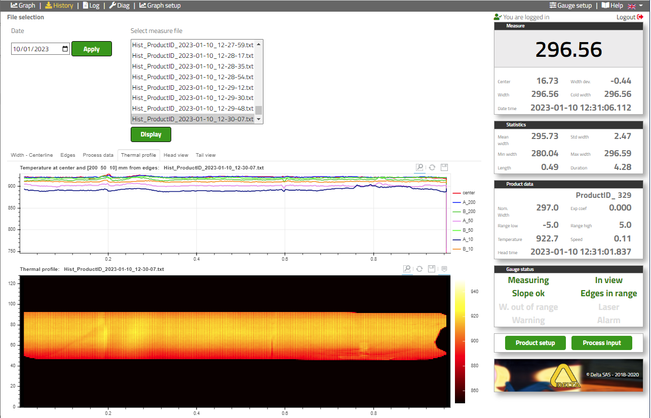 Temperature graphs: display the strip temperature at the center and at a distance of 10, 50, 200 mm from the edges,